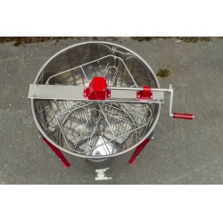 Jednoduchý nerezový zvratný medomet s ručním pohonem určený pro čtyři rámky o maximální velikosti 45 cm x 25 cm.