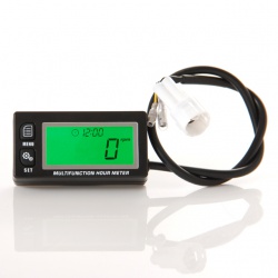 Univerzální měřič motohodin pro benzínové motory. Kabílek motohodin stačí pouze obtočit kolem kabelu vedoucímu ke svíčce tak, aby se nedotýkal kostry. Poté zařízení měří samočinně dobu chodu motoru. Měří také otáčky motoru. Je resetovatelný s funkcí vylolání paměti s maximálními otáčkami. Měřič má podsvícený displej.